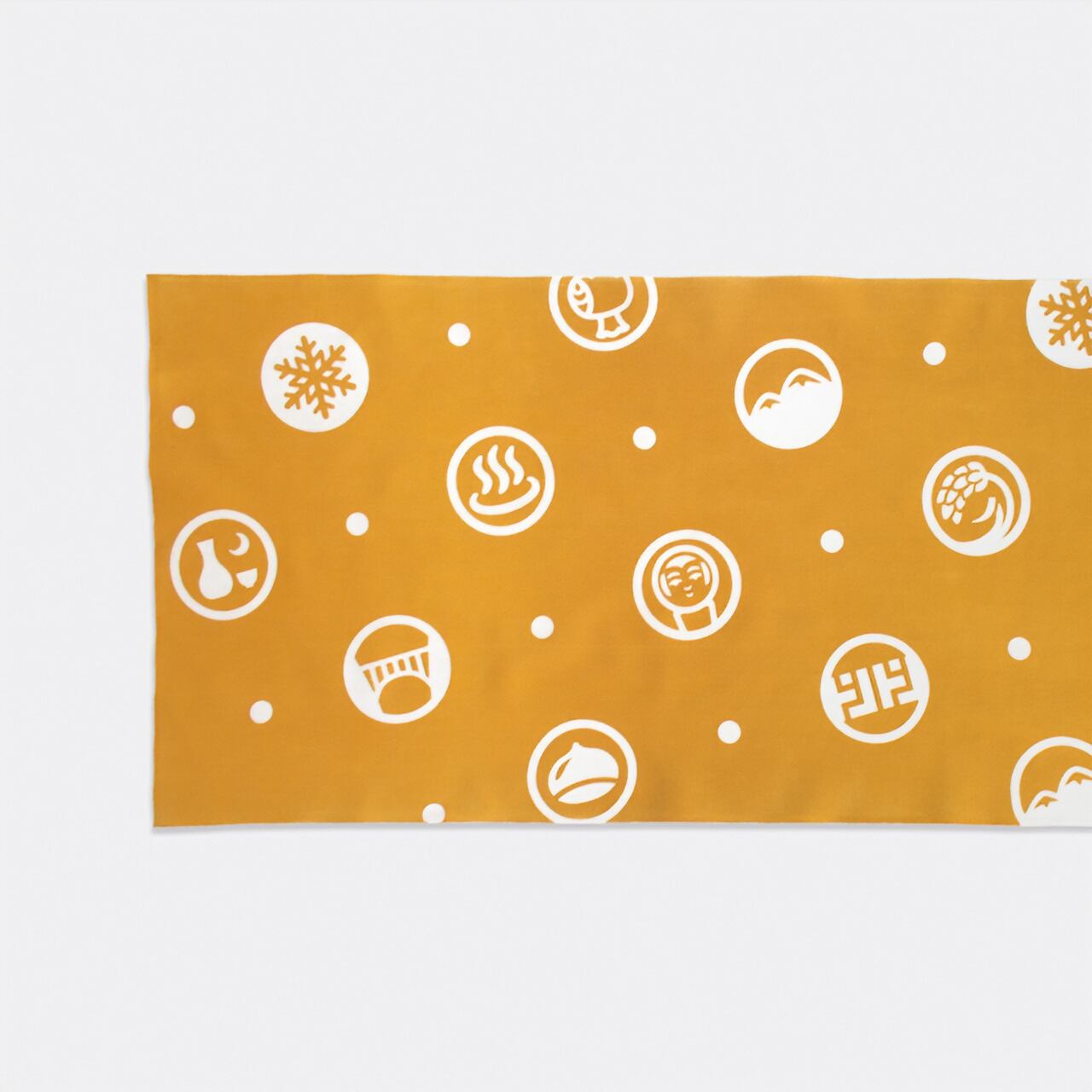 大崎から望む奥羽山脈、鳴子峡、温泉、こけしなど、てぬぐいの中で旅するように、紋を散りばめました。